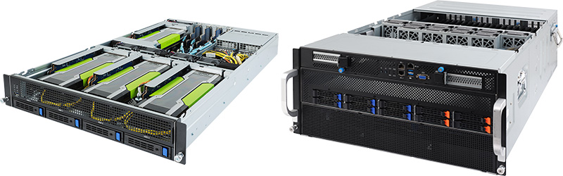 技嘉科技的 G482 系列是 4U 機身雙插槽伺服器產品,不僅具有超高密度的加速卡數量,而且還具有令人印象深刻的板載儲存空間,例如,可允許用戶在單一系統內構建儲存叢集,做為深度學習訓練所需的數據集。
