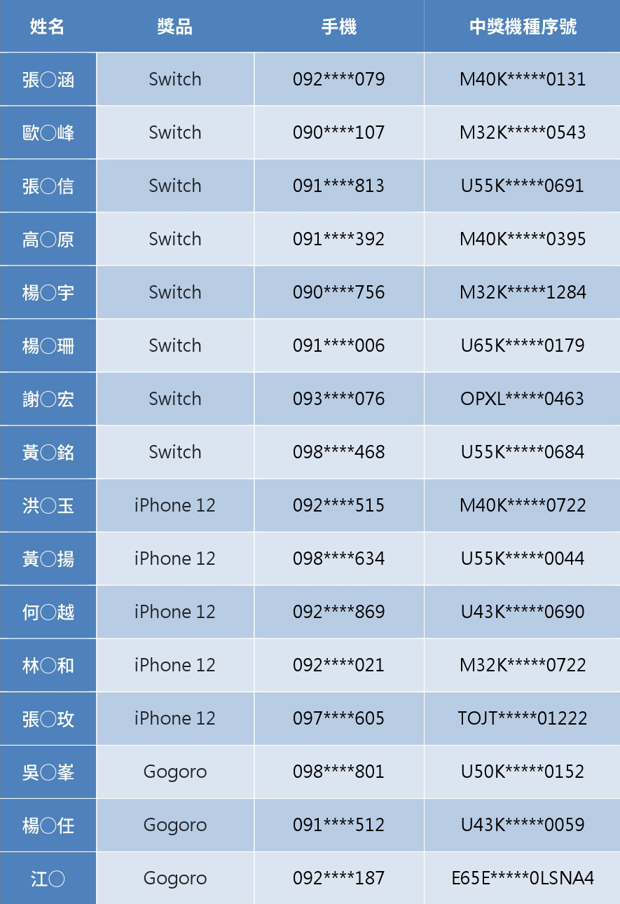 【AOC大型顯示器第三、第四波抽獎 得獎名單】 <現場見證律師:邱靖貽>