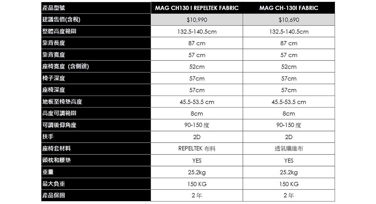 MAG CH130 I FABRIC 採用柔軟灰色透氣布料,為常久坐的玩家,提供不悶熱的舒適感受。加上符合人體工學的結構設計,讓您的身體獲得良好的支撐,降低疲憊感。