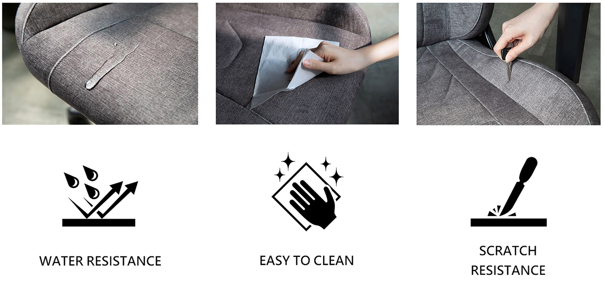 MAG CH130 I REPELTEK FABRIC 所採用的布料耐磨係數超過 50,000 轉,不僅耐磨性高,也能提高使用壽命,讓您與孩子和寵物更安心享受美好時光。除此之外,MAG CH130 I REPELTEK FABRIC也有極佳防水功能,即使不小心將液體灑在上面,液體會凝結在織物表面,便於清潔。
