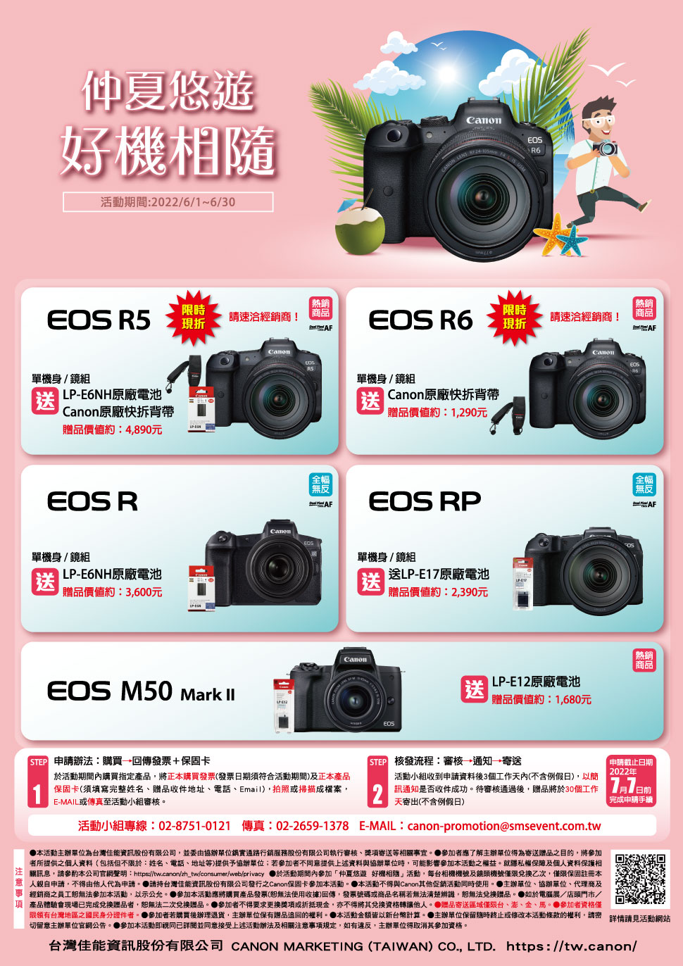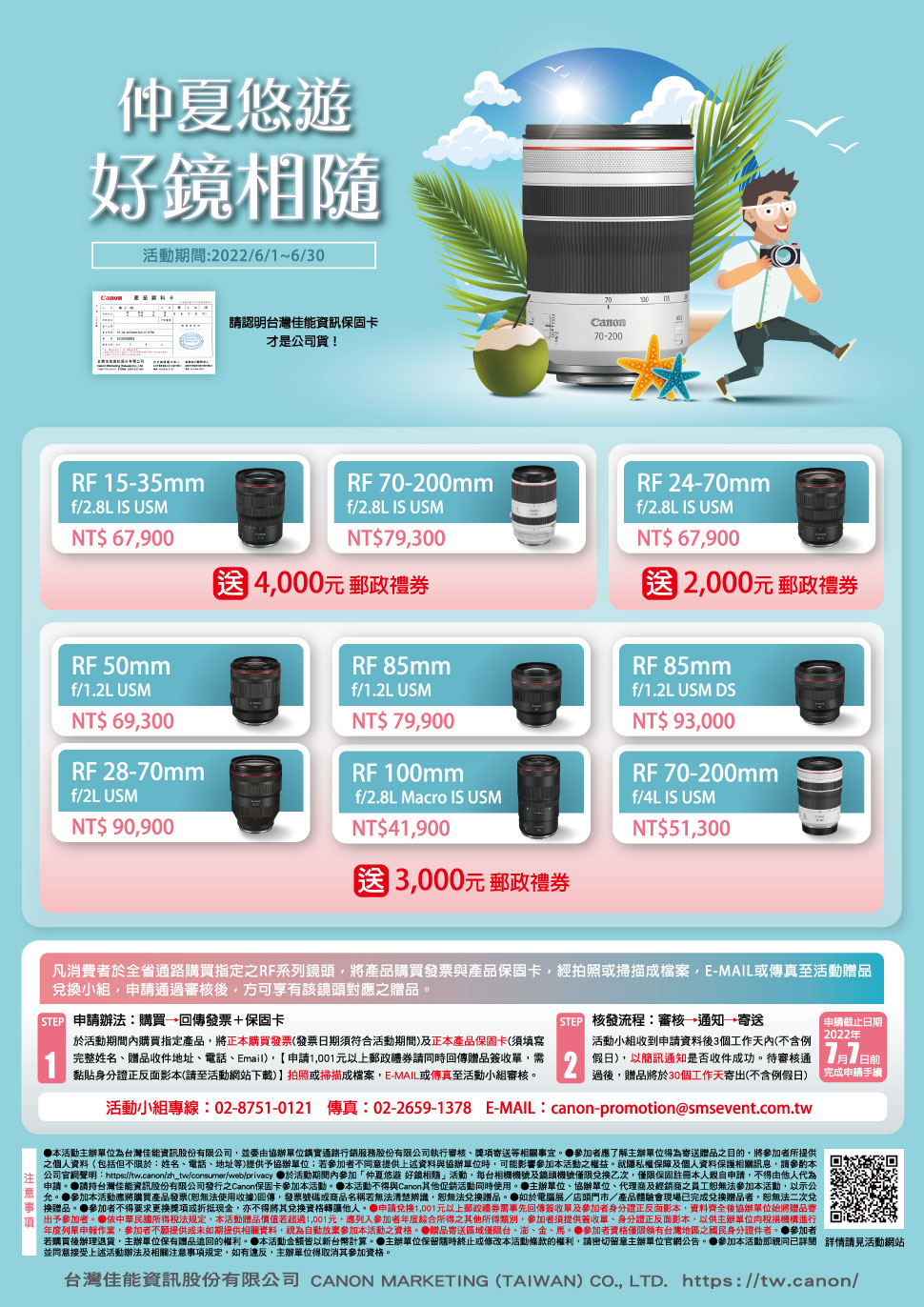 仲夏悠遊、好機&好鏡相隨。買指定鏡頭送4,000元郵政禮券!活動時間:2022/6/1-6/30。