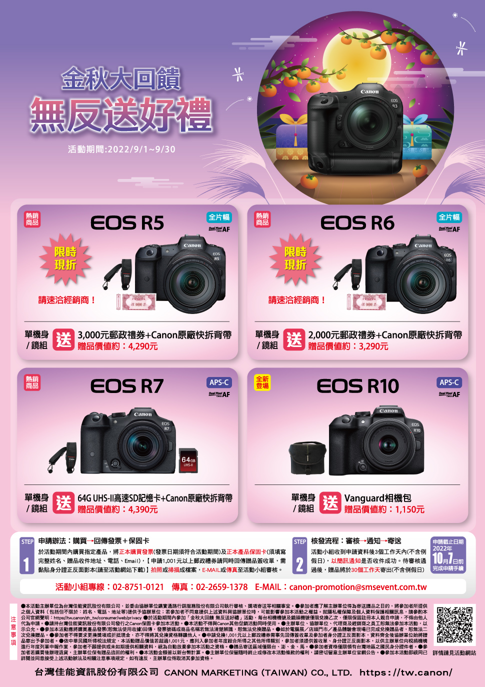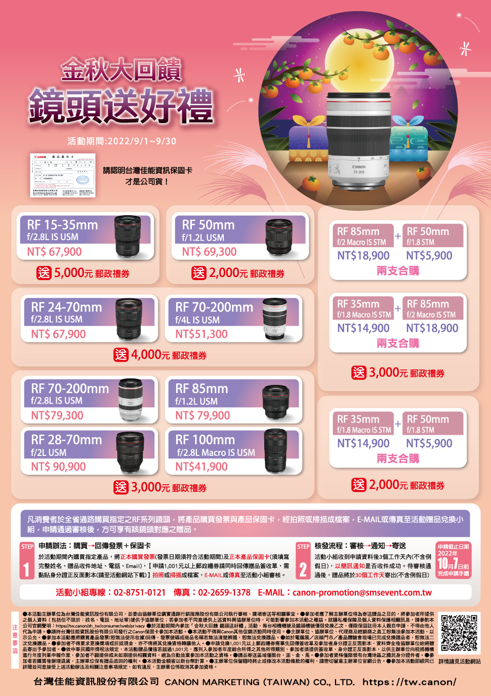 金秋大回饋 無反 & 鏡頭送好禮-鏡頭系列。買指定鏡頭送郵政禮券!活動時間:2022/9/1-9/30。