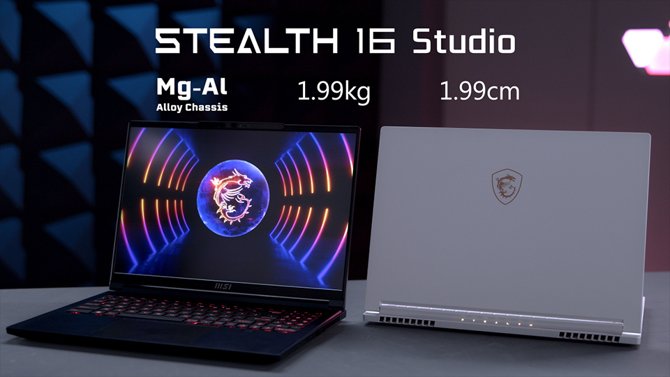 全新設計的Stealth 16 Studio、Stealth 14 Studio推出即榮獲CES® 2023 創新獎肯定,採用鎂鋁合金材質打造輕巧且堅固的纖薄機身,提供純淨白、星空藍兩款質感色調選擇。其中,Stealth 16 Studio重量不到2 kg,機身也僅有1.99cm。