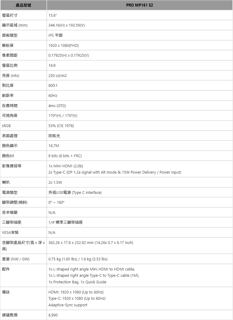 PRO MP161 E2除了可擴展筆記型電腦或智慧型手機的畫面外。進化版更將原本的機身腳架做人體工學的延伸加長,讓您在垂直或水平使用外接顯示器時,擁有更多元的觀看角度。同時支援1/4”標準三腳架插孔設計,方便攝影師將外接螢幕銜接相機腳架觀看影像使用。
