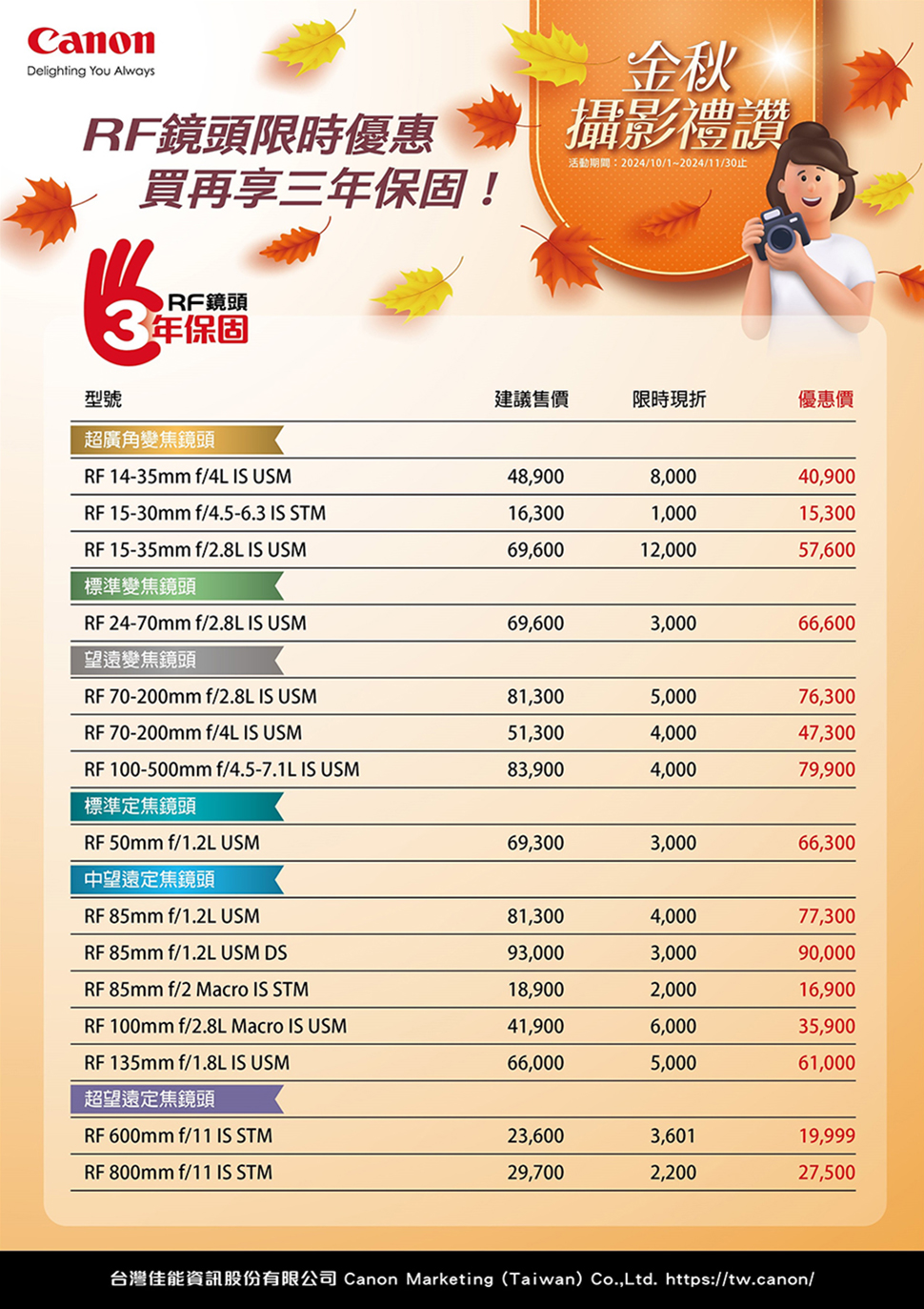 Canon RF鏡頭限時優惠 & 在佳真好10-11月號