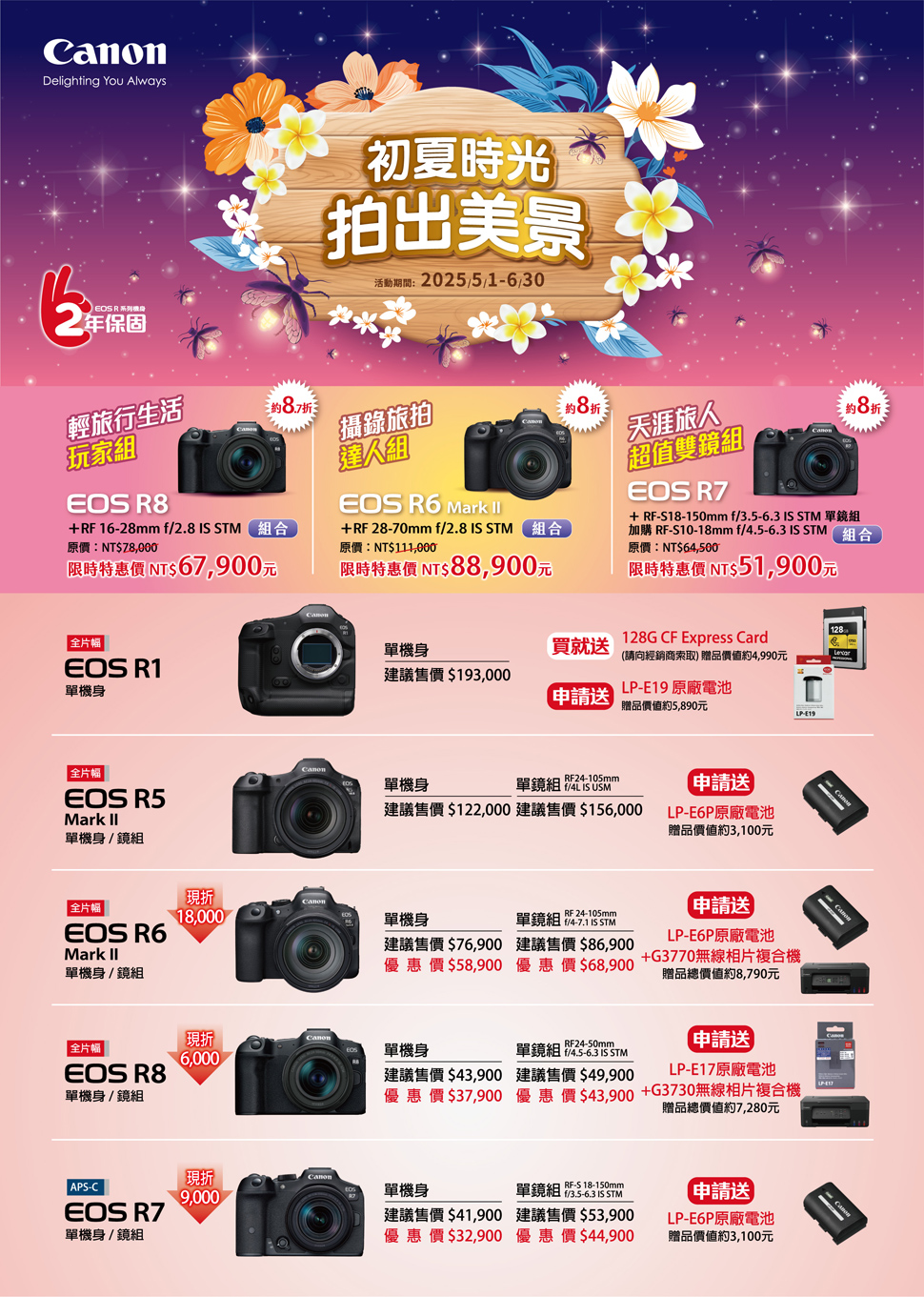 Canon 初夏時光拍出美景:《相機篇》 活動時間:2025/5/1-6/30。