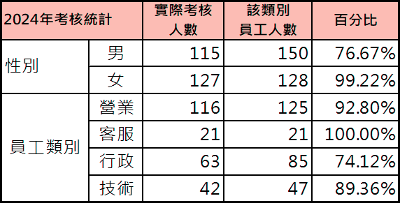 ※註:本公司在10月份進行考核,實際考核人數為2024/6/30前報到的在職員工。