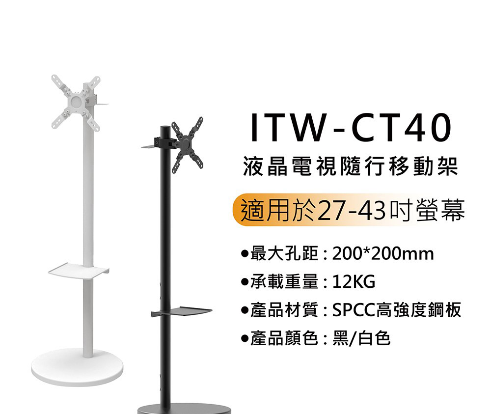 KATAI 27"~40" 液晶螢幕隨行移動架(黑) ( ITW-CT40-B )