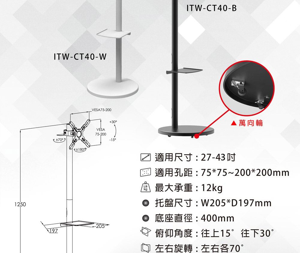 - 支援螢幕27"-40"/最大承重12KG