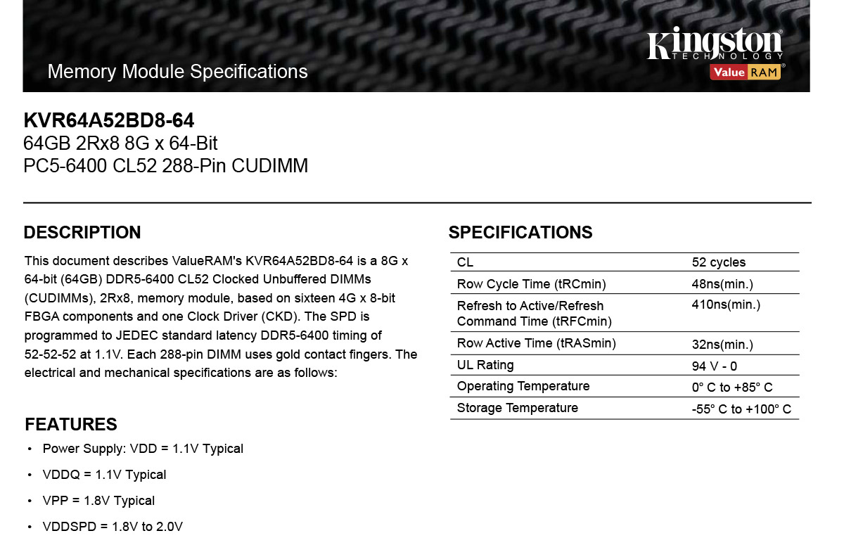 Kingston KVR64A52BD8-64 740617348170 建達料號:RMKVR64A52BD864 原廠型號:KVR64A52BD8-64 建議售價:$ 28,675 (含稅) 我要購買 商品介紹