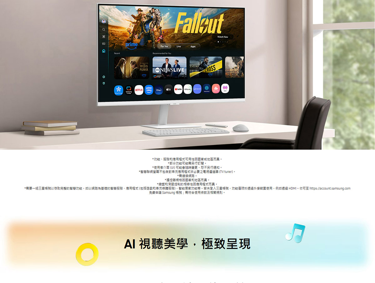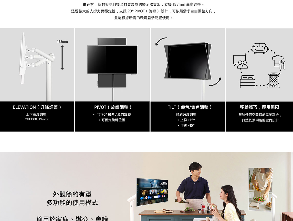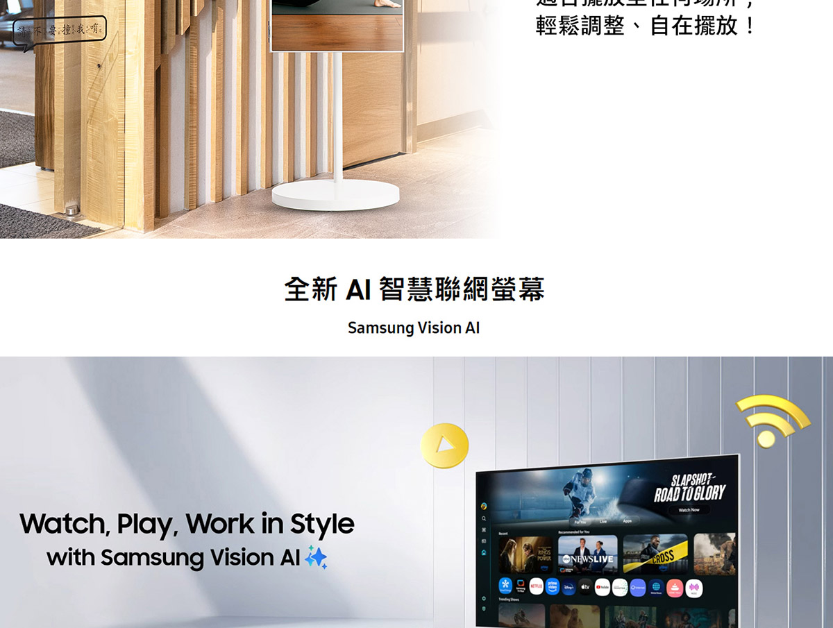 Samsung 32" AI FollowMe Pro 4K 移動式智慧聯網螢幕組-白(M7 M70F) ( LS32FM703UCXZW + HA-MTS2S32WHT )