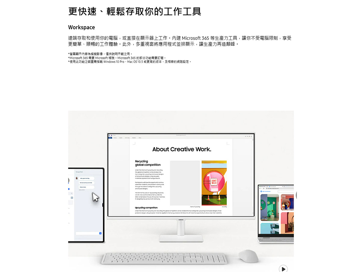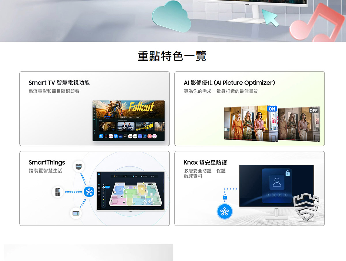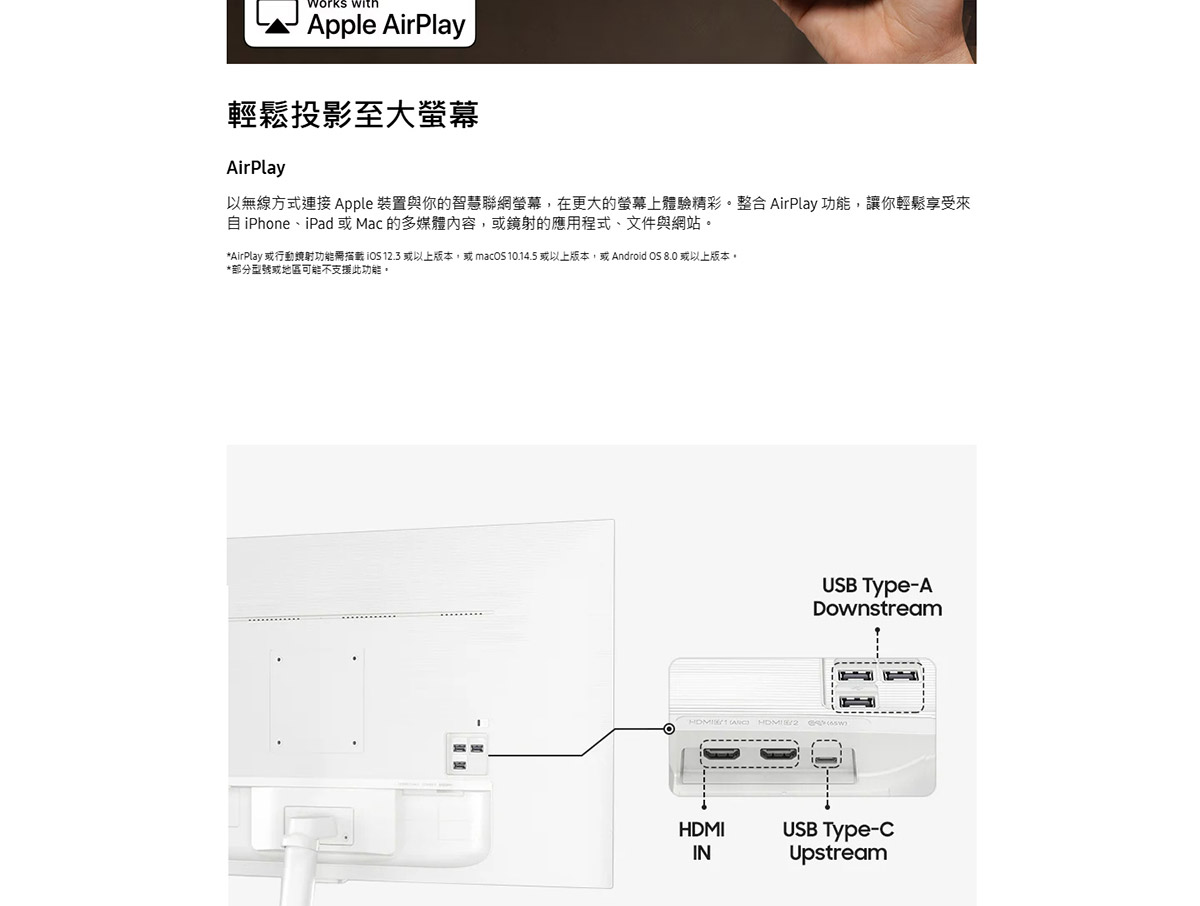 Samsung 32" AI FollowMe Pro 4K 移動式智慧聯網螢幕組-白(M7 M70F) ( LS32FM703UCXZW + HA-MTS2S32WHT )
