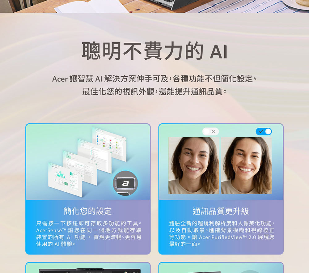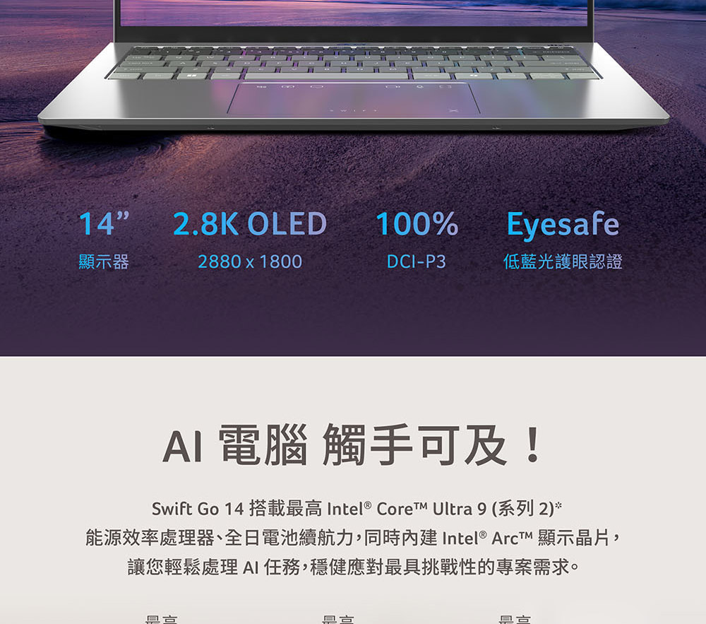 ACER Swift Go系列:SFG14-74-588E(銀) ( UN.JF8TA.005 ) 14" WUXGA 1920x1200/16:10/鏡面/OLEDIntel® Core™ Ultra 5 processor 225H16GB LPDDR5X(Onboard)/512GB PCIe GeWindows 11 Home/附鼠包 建達料號:NBACUNJF8TA005 原廠型號:UN.JF8TA.005 建議售價:$ 34,999 (含稅) 我要購買 商品介紹